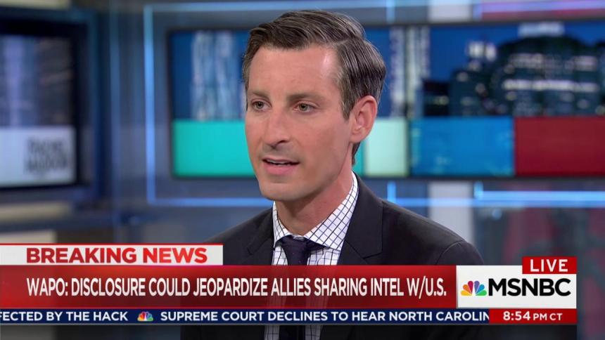“Look, there is a core assumption that undergirds our intelligence relationships the world over, our information sharing relationships with friends, with allies, and frankly at times even with adversaries. And that is we will share with you if you share with us with a reciprocal understanding that we will safeguard each other’s information. And there is not to be onward passage of that information without explicit consent of the country that gave us that piece of information.”So, if the details today in the Washington Post report are true, President Trump betrayed that core premise, that core assumption under which all of our intelligence relationships are forged.”And, of course, it will infuriate this purportedly close ally. But that’s, in a way, small potatoes. What is a much graver threat I think to the United States and to our people is that countries around the world — countries that perhaps have a better presence in places like Syria, or have more expertise in groups like ISIL or core al Qaeda — they will think once, they will think twice, or maybe they will stop sharing information with us to begin with if they cannot be confident that we can safeguard their information.”