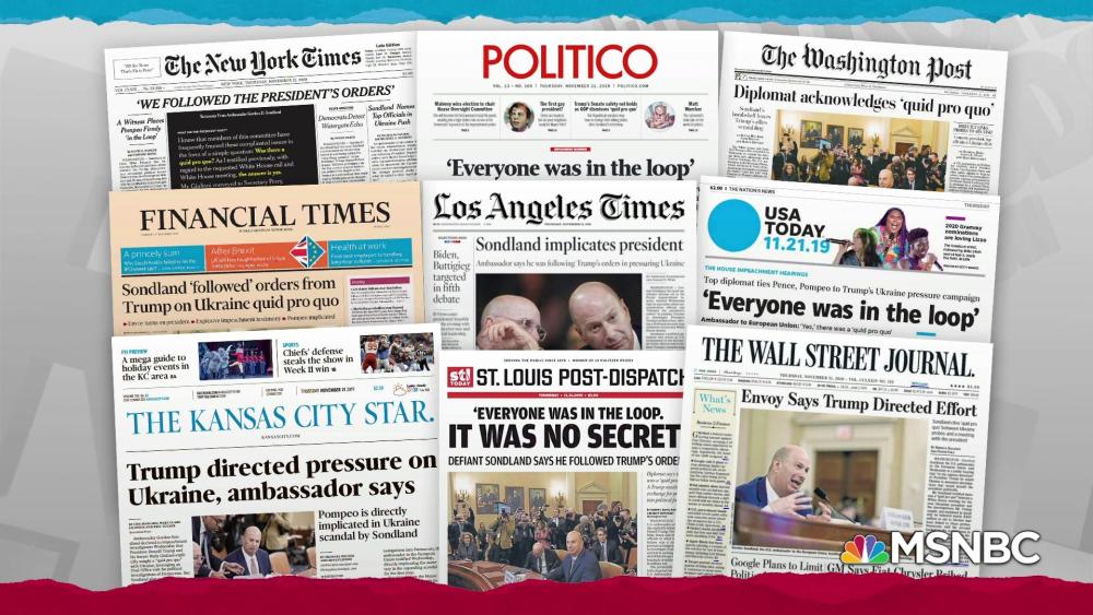 Sondland bombshell impeachment testimony captures US front pages /