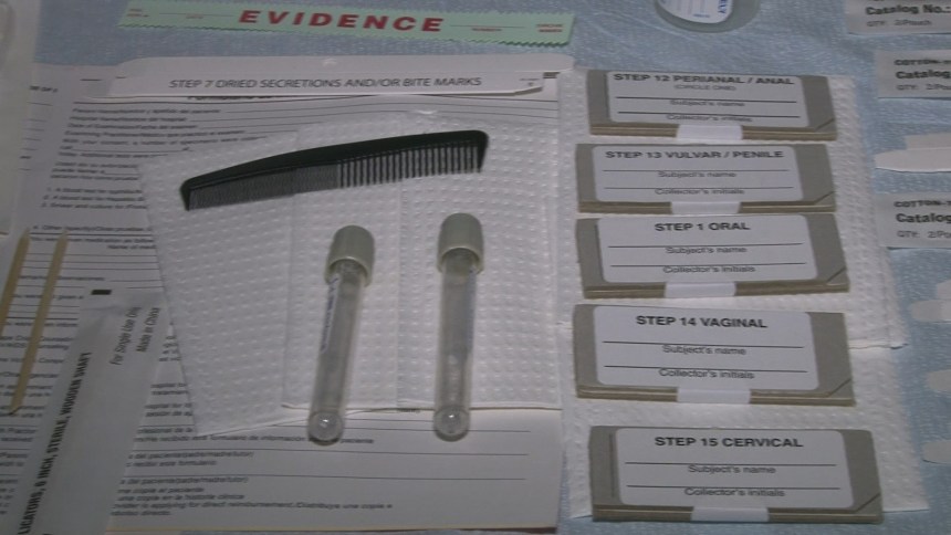 After a victim goes to a hospital to undergo the procedure, the examiner collects biological evidence, which can include skin, hair, blood, and saliva, and photographs the victim’s body to document any injuries or bruises. If a victim decides to go through with reporting the crime to police, the kit is supposed to be tested.