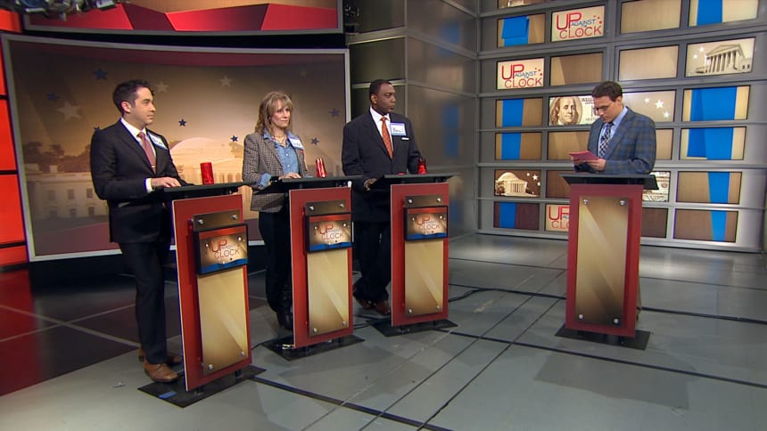 For the first time in UP Against the Clock’s storied history, a contestant triumphed in the bonus round and took home the grand prize. After defeating Basil Smikle Jr. and Lizz Winstead in regular competition, Salon’s Brian Beutler snagged a $50 gift certificate to Little Poland, the storied game show’s long-coveted treasure.