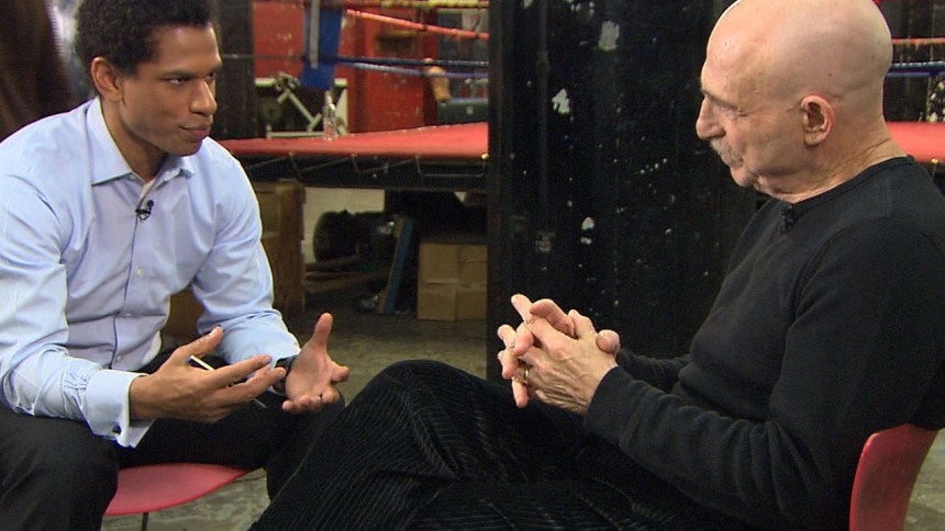 We were there to talk to Howard Schatz, world famous photographer, and man behind the new book At The Fights. It’s filled–cover to cover–with the most beautiful and striking photos of boxing you’ve ever seen, from ringside action shots, to portraits that stop you in your tracks. It’s not just photos of gladiators, either. There’s interviews, and pictures of everyone involved in the business: trainers, doctors, managers, historians, announcers, judges, promoters–the lifeblood of the sport.