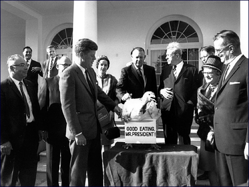 As NBC’s Domenico Montanaro writes, President Kennedy is believed to be the first President to actually pardon a turkey. An NBC News archive search found a Los Angeles Times article dated Nov. 20, 1963 with the headline, “Turkey gets presidential pardon.” And that turkey was a monster. The paper described it as a “55-pound broad white tom.” Despite a sign hanging around the bird’s neck that read, “Good eating, Mr. President,” Kennedy took a look down at the “frightened, panting bird” and said, “We’ll just let this one grow.”