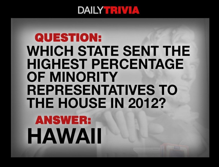 Hawaii voters sent the highest percentage of minority representatives to the House in 2012, with 100 percent.