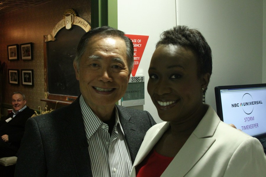 Finally, Lawrence O’Donnell laughing at a joke by Mr. Sulu himself:
