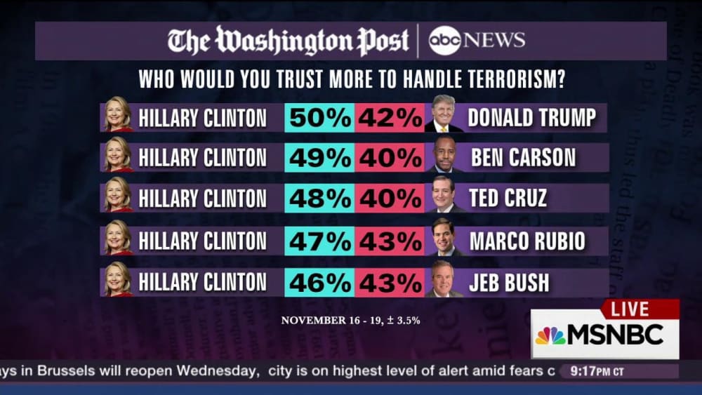Poll: Voters trust Clinton most on terrorism