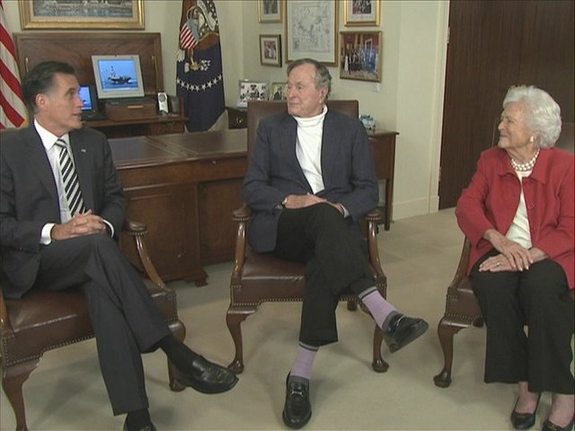 Romney and George H.W. Bush talk about chairs /