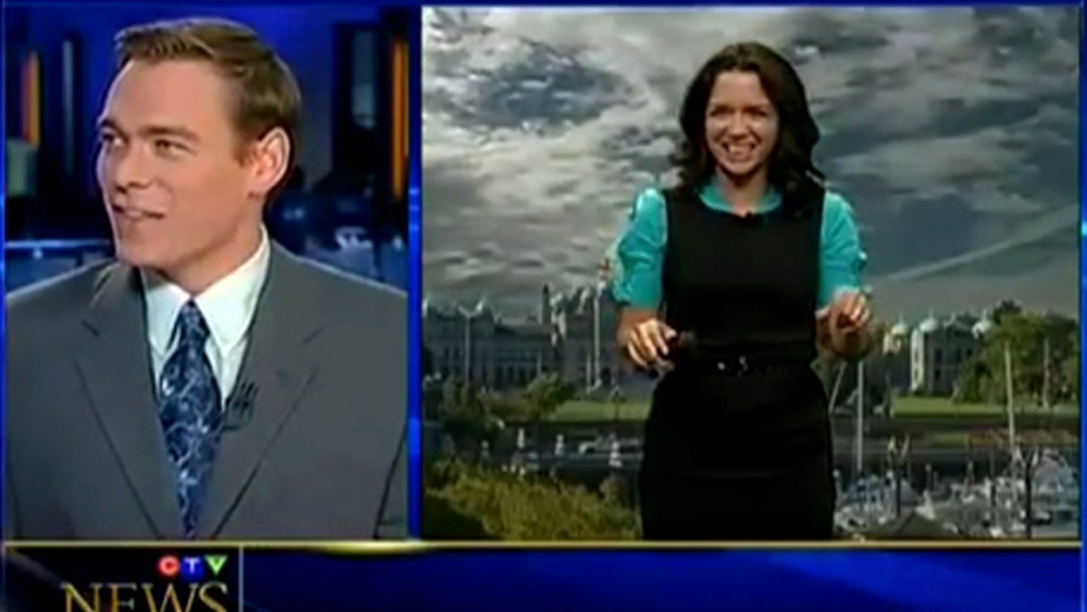TV anchor asks fellow reporter to canoodle with him